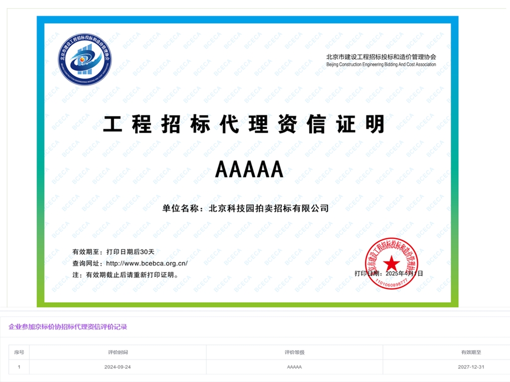 • 北京科技園拍賣招標有限公司拍賣招商公告
